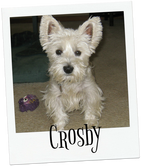 With his innate Westie charm and good looks, he soon worked his way into the heart of his foster home. Crosby adopted his new family and now is happily living with his two big sisters, MacDougall (Westie) and Brodie (Scottie).